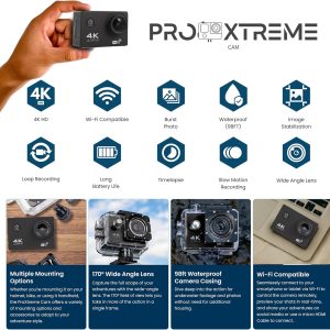 Capture all of your adventures in stunning detail with the Pro Xtreme 4K Action Camera. This ultra HD waterproof camera is perfect for snorkeling, diving, and all of your outdoor activities. The 170° wide angle lens allows you to capture more of the action, while image stabilization ensures your footage is smooth and steady. With…
